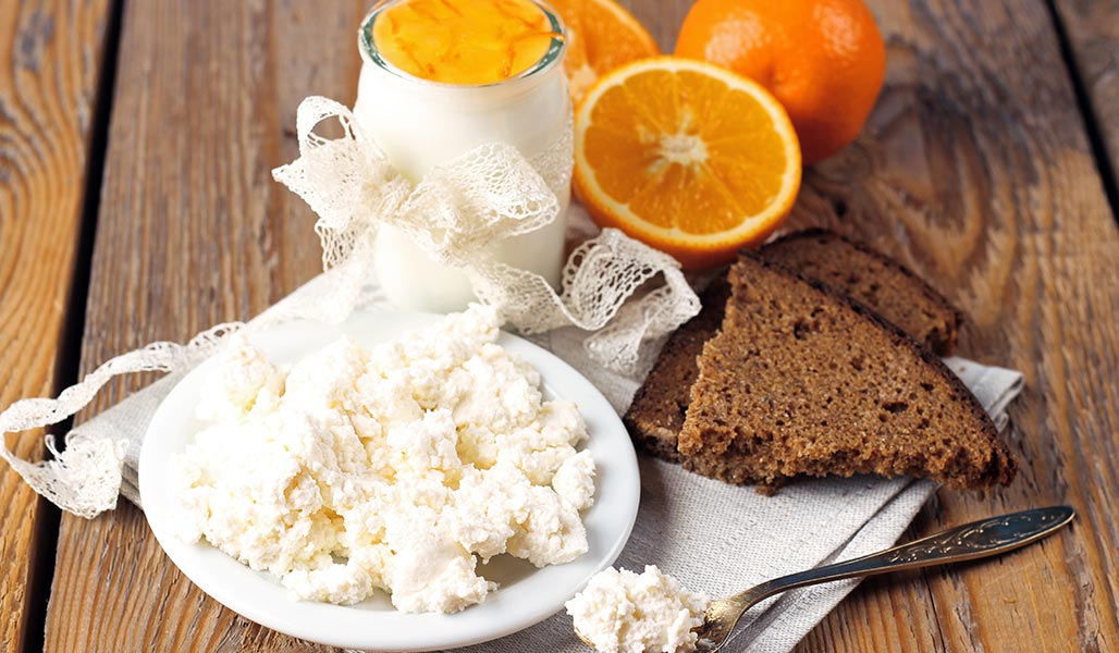 Orangen schälen und in Spalten teilen. Orangenöl aus der unbehandelten Schale in ein Schälchen pressen und mit Hüttenkäse, Crème fraîce, Zimt und Stevia gründlich vermischen.