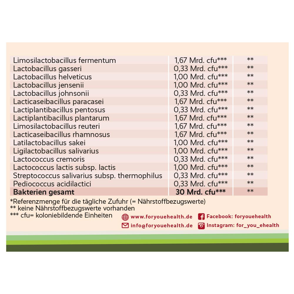 30 Bakterienstämme pro Kapsel