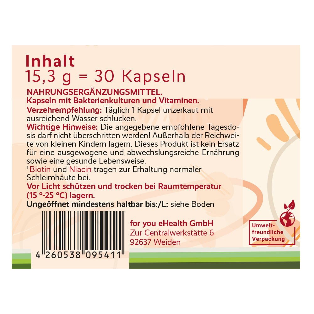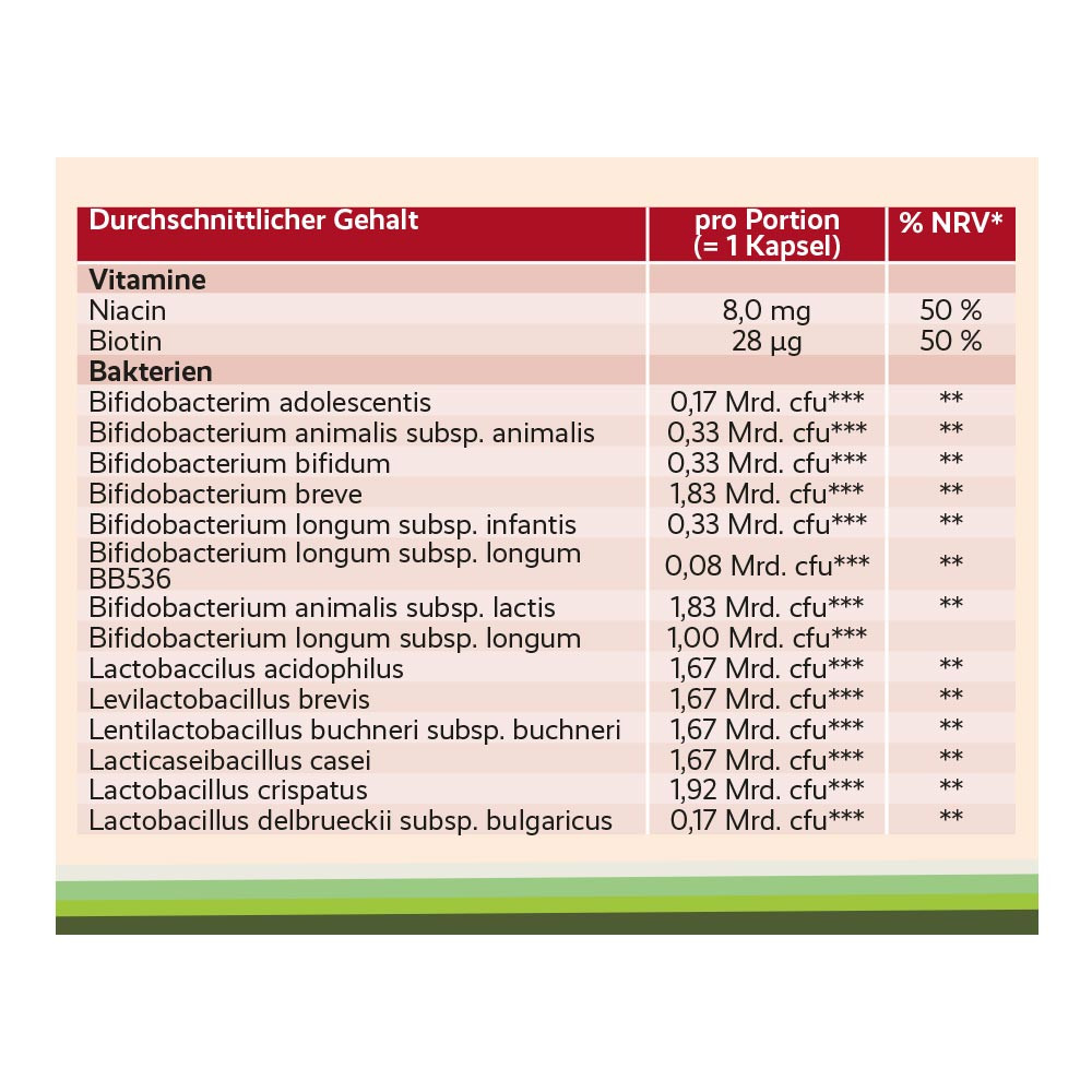 - 30 Milliarden lebenden Bakterien, gezielt auf die Bedürfnisse einer gesunden Darmflora abgestimmt