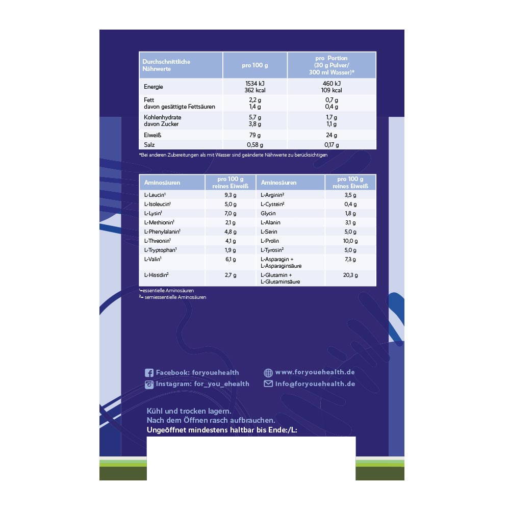 Es enthält alle essentiellen Aminosäuren, ist fettarm, zuckerarm und glutenfrei.