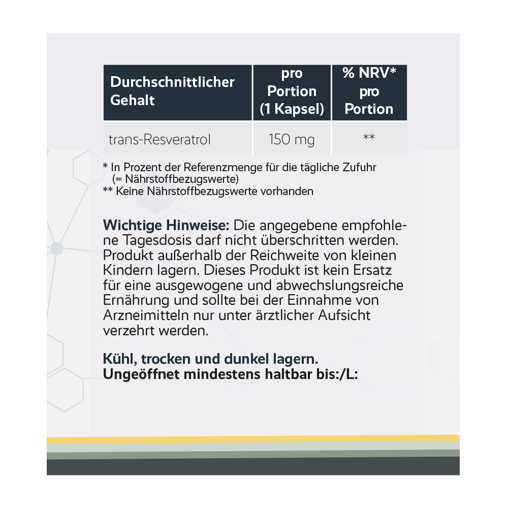 - 120 Kapseln mit 150 mg trans-Resveratrol pro Kapsel