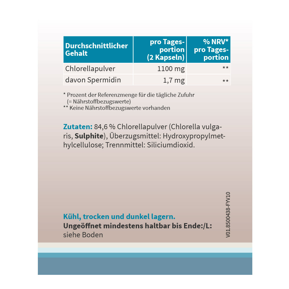 | Chlorellapulver davon Spermidin | 1100 mg 1,7 mg | ** ** |