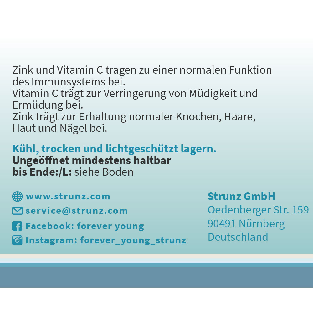 - Kombination aus Zinkcitrat + Vitamin C – optimal bei Erkältungsneigung und erhöhter Belastung