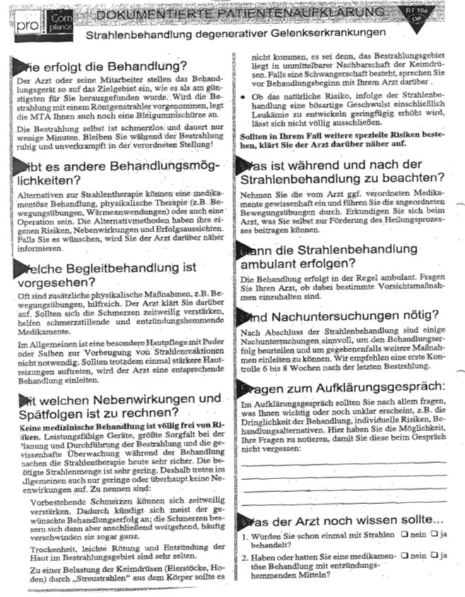 - Ganz schwache Röntgenbestrahlung. Hat mir persönlich geholfen.