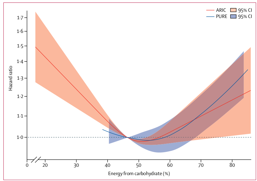 Dietary carbohydrate intake and mortality: a prospective cohort study and meta-analysis, Walter C Willett et al. 2018, DOI: 10.1016/S2468-2667(18)30135-X