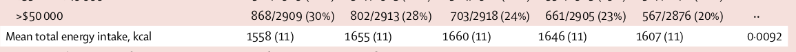 Die Gruppe mit der geringsten Menge an Kohlenhydraten hat 37 Prozent Kohlenhydrate gegessen. Es tut mir leid, liebe Autoren, aber das ist kein Low Carb. Die Hälfte davon wäre Low Carb und diese Gruppe hat an der Studie gar nicht teilgenommen. Das bedeutet, dass die obige Abbildung glatt gelogen ist. Und wir wissen, dass die Daten ohnehin nur auf Befragungen der Personen aufbauen und somit hoch fehlerhaft sind. Das sieht man an dem nächsten lustigen Beispiel: