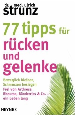 Jeder kann sich leicht vorstellen, dass er als schlanker, fitter, beweglicher Mensch etwas weniger Kummer mit seinem Rücken haben dürfte. Das fängt an bei der Reduktion Ihres überflüssigen Körperfetts von derzeit 32 % auf hoffentlich 15 %. Und wie das geht, lesen Sie in „77 Tipps für Rücken und Gelenke“ kurz, knapp, ziemlich vollständig. Wirklich schon gewusst?